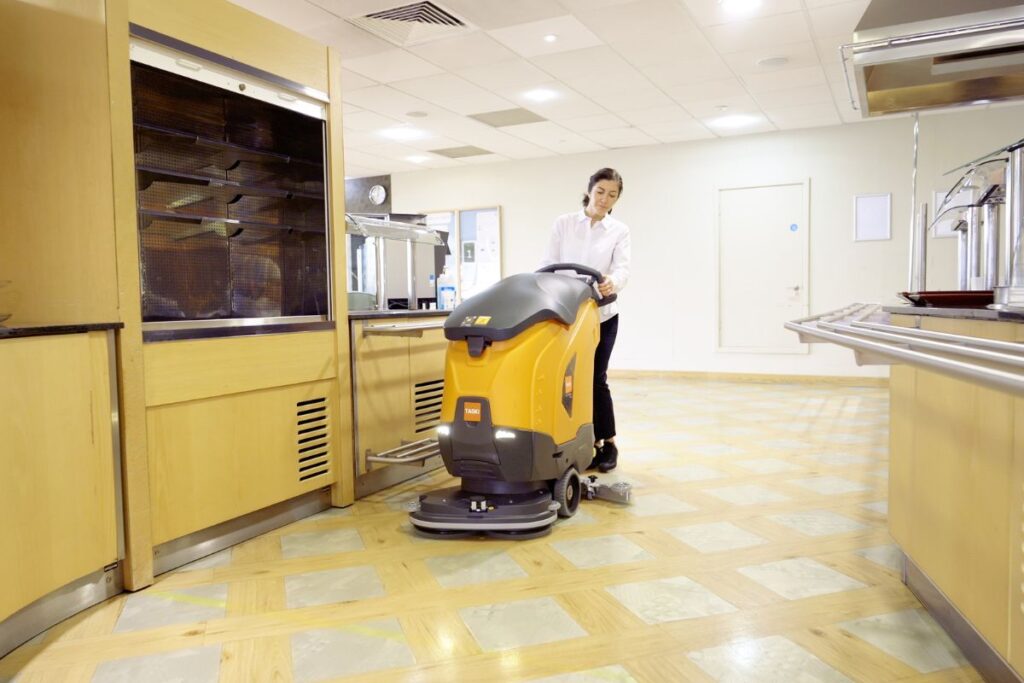 - TASKI ULTIMAXX 360 – kompaktowa i wydajna maszyna szorująco-zbierająca, idealna do restauracji, sal konferencyjnych i stref SPA. W jednym przejeździe dokładnie szoruje i osusza podłogę, zapewniając maksymalne bezpieczeństwo i higienę.